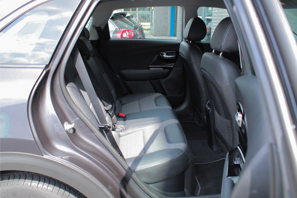 Prachtige Kia Niro PHEV in de rijk uitgeruste "DynamicLine" uitvoering! Deze uitvoering heeft de volgende luxe opties standaard; luxe half lederen interieur, stoelverwarming en stuurwiel verwarming en parkeersensoren. Uiteraard zijn dit niet de enige belangrijke opties, verder is de Niro van allerhande luxe en veiligheidsopties voorzien, denk hierbij aan: