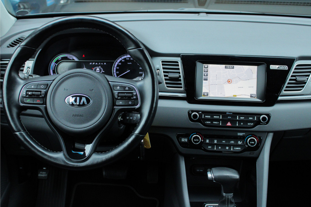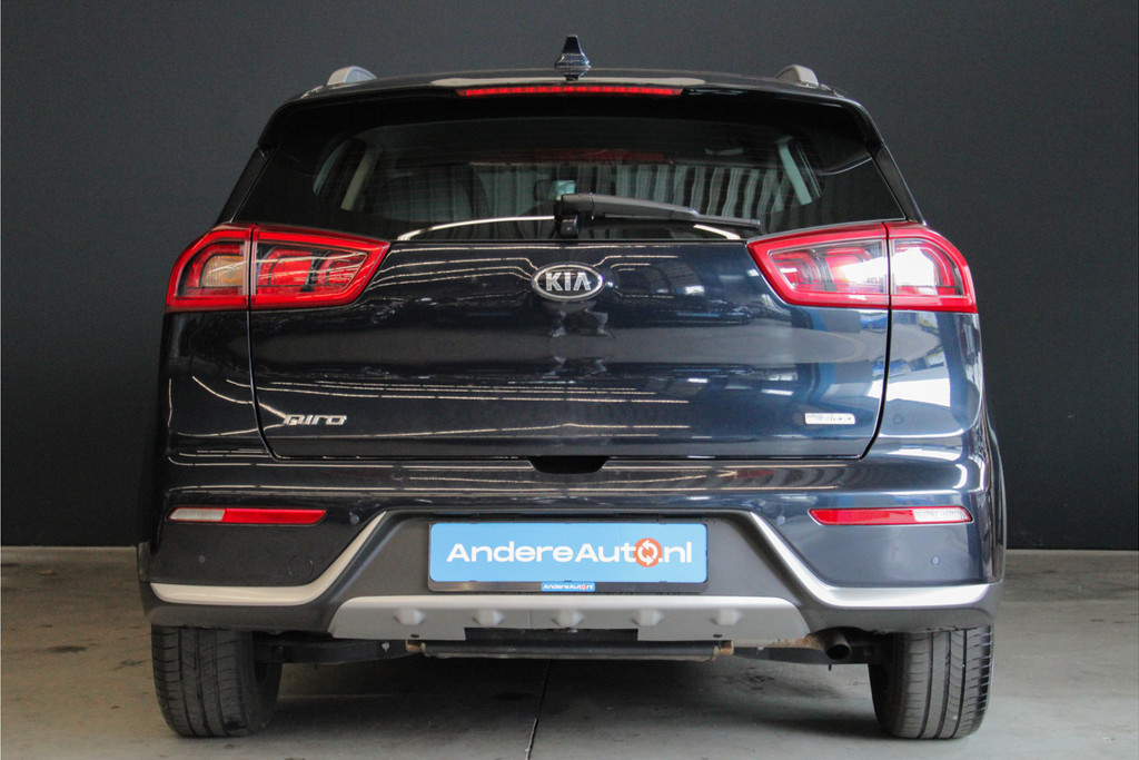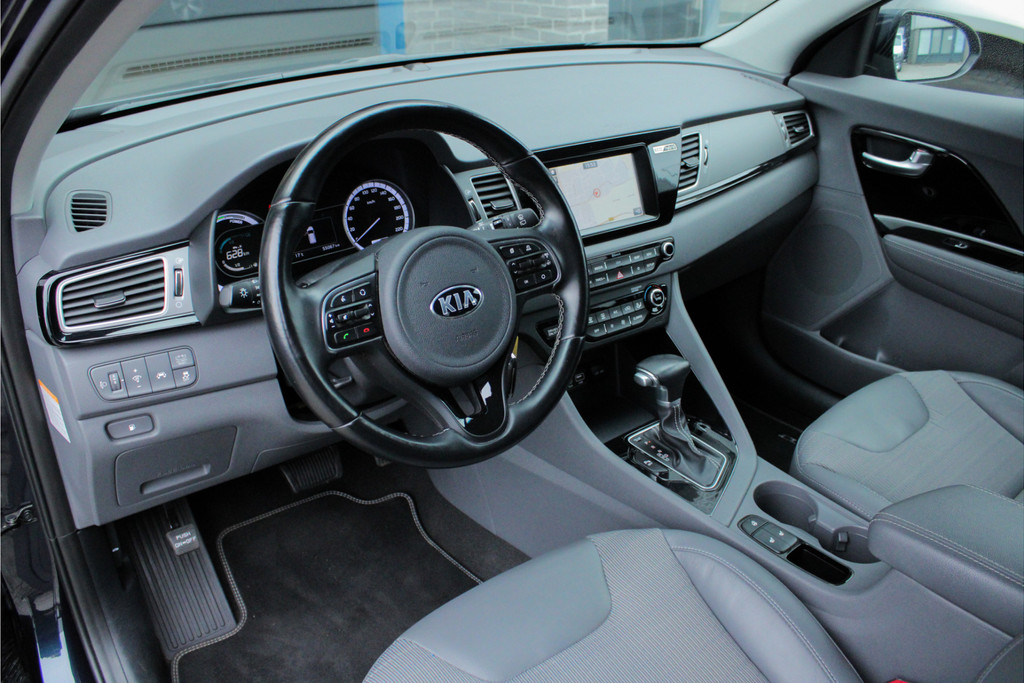 Prachtige en luxe uitgevoerde Kia Niro DynamicLine met een perfecte onderhoudshistorie! Deze auto is door de Kia dealer onderhouden volgens voorschrift en daarmee valt deze auto nog in de fabrieksgarantie bij Kia! Verder is deze Niro uitgerust met een tal van luxe en veilige opties, denk o.a. aan: