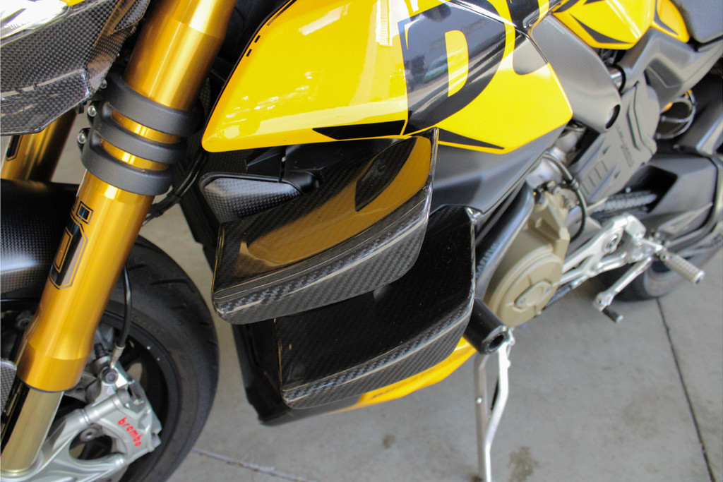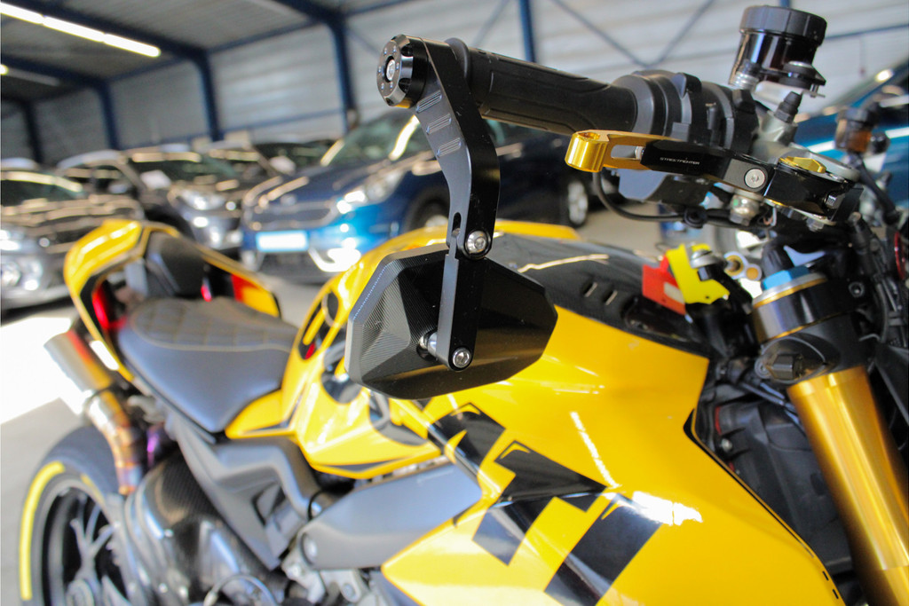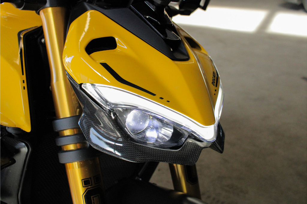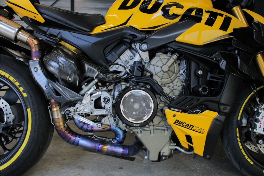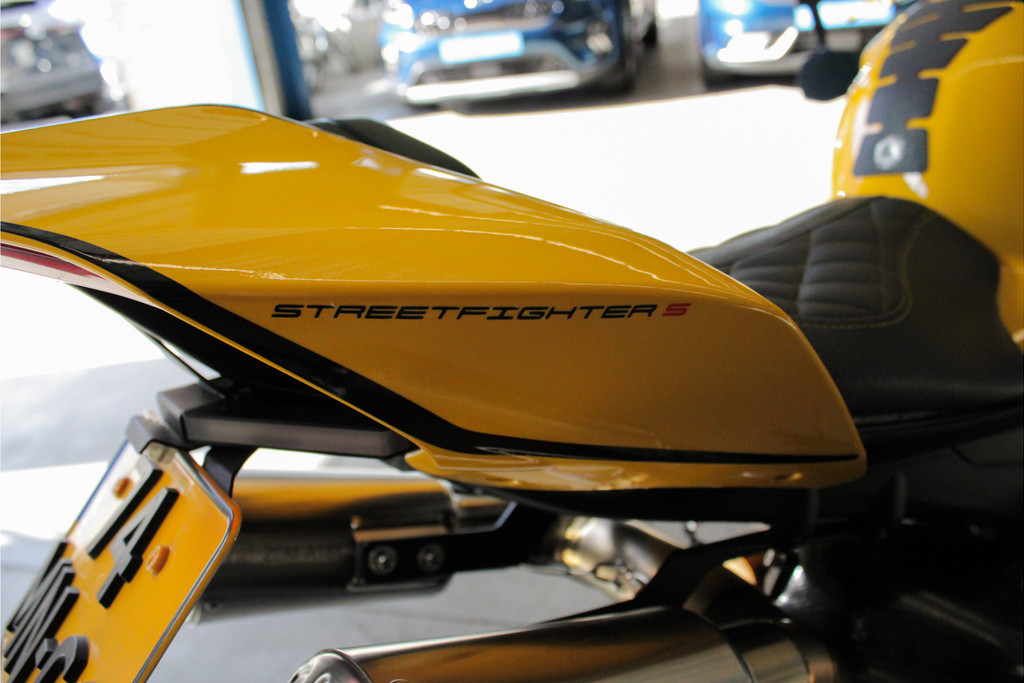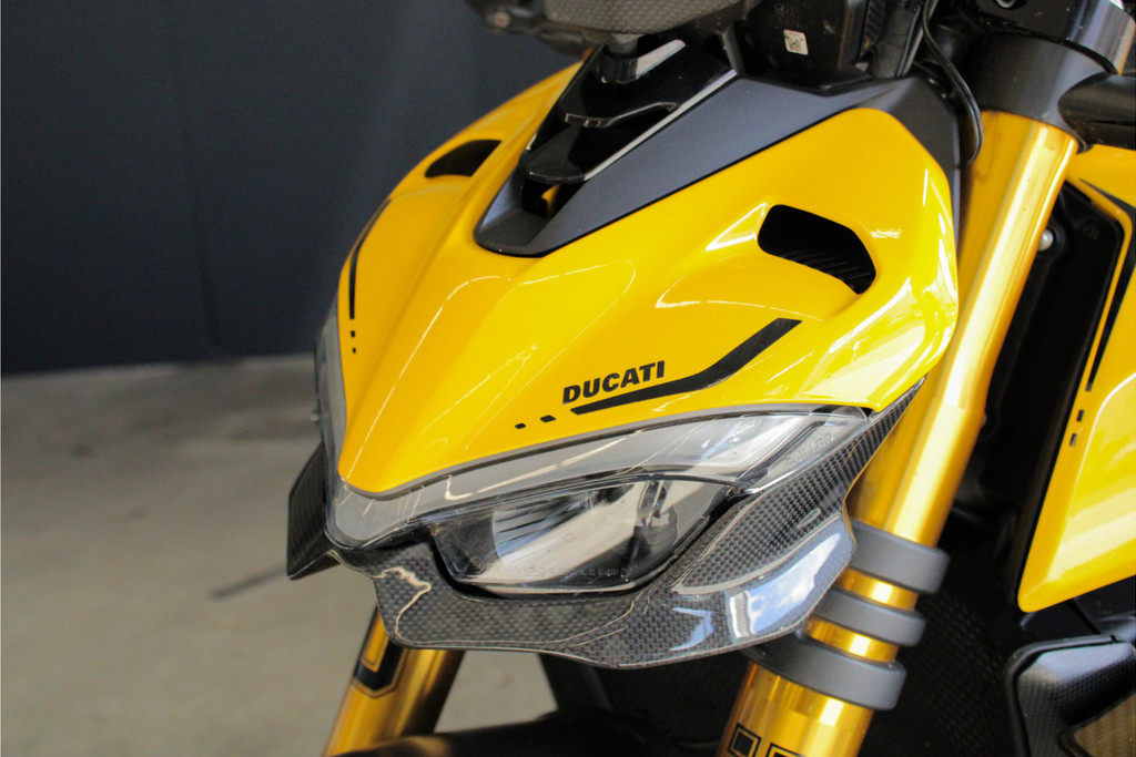 Unieke Ducati Streetfighter V4S! Dit betreft een Nederlands geleverde motor en is jaarlijks onderhouden bij de Ducati dealer. Recent heeft deze motor nog onderhoud gehad, de digitale servicehistorie is aanwezig samen met 2 sleutels, handzender voor het alarmsysteem en 2 sleutels van het wielslot, ook zit de originele Ducati map met een tal van extra onderdelen bij de motor! Verder is deze Ducati volledig gecustomised zowel optisch als technisch! Deze motor is voorzien van carbon delen, open koppelingshuis met verlichting, titanium Vandemon uitlaatsysteem, Up-map mapping, instelbare remhendels, handvat verwarming, custom zadel en zo nog veel meer! Met deze motor wordt nog gereden, de kilometerstand kan dus afwijken! Om deze motor te bekijken vragen we om een afspraak te maken! Kijk voor alle 50+ foto's op de website: www.andereauto.nl
