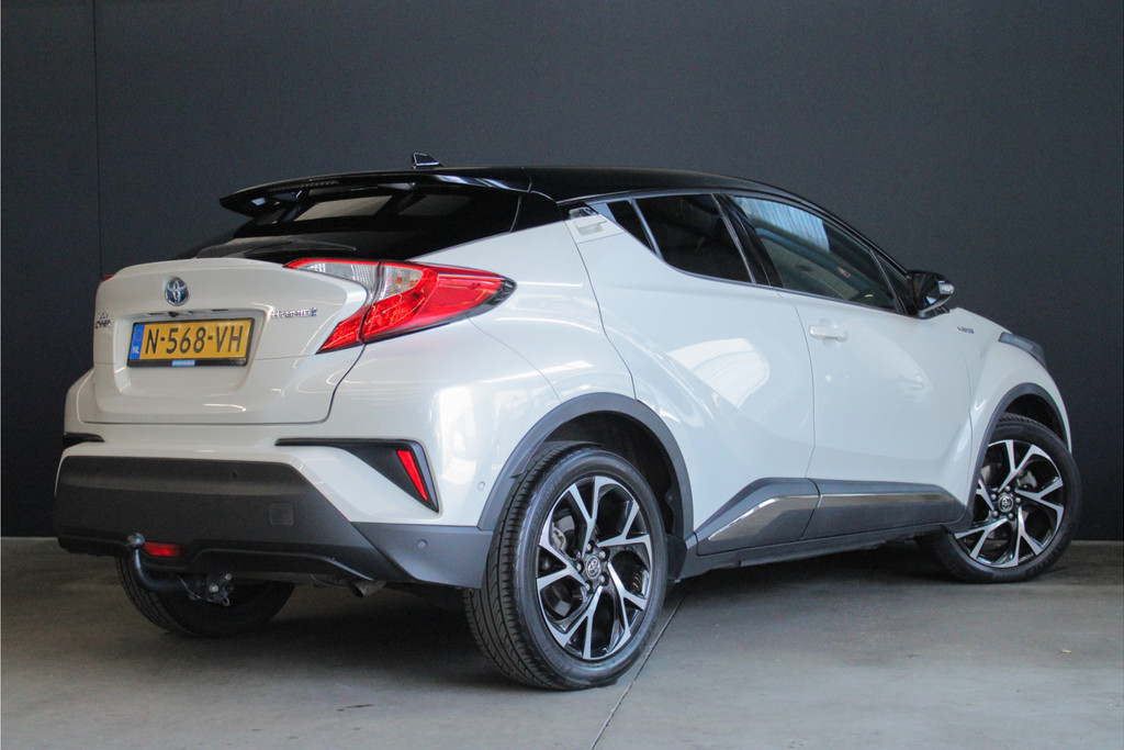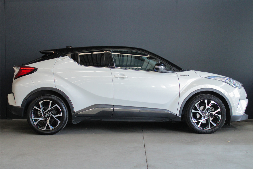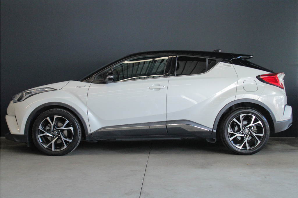 Door inruil bij ons binnen gekomen, in goede staat verkerende Toyota C-HR in de stoere "Bi-Tone" uitvoering! Deze auto is voorzien van een tal van luxe en veilige opties. Deze auto is uitgerust met 4 goede zomerbanden. Belangrijke opties van de C-HR zijn o.a.: