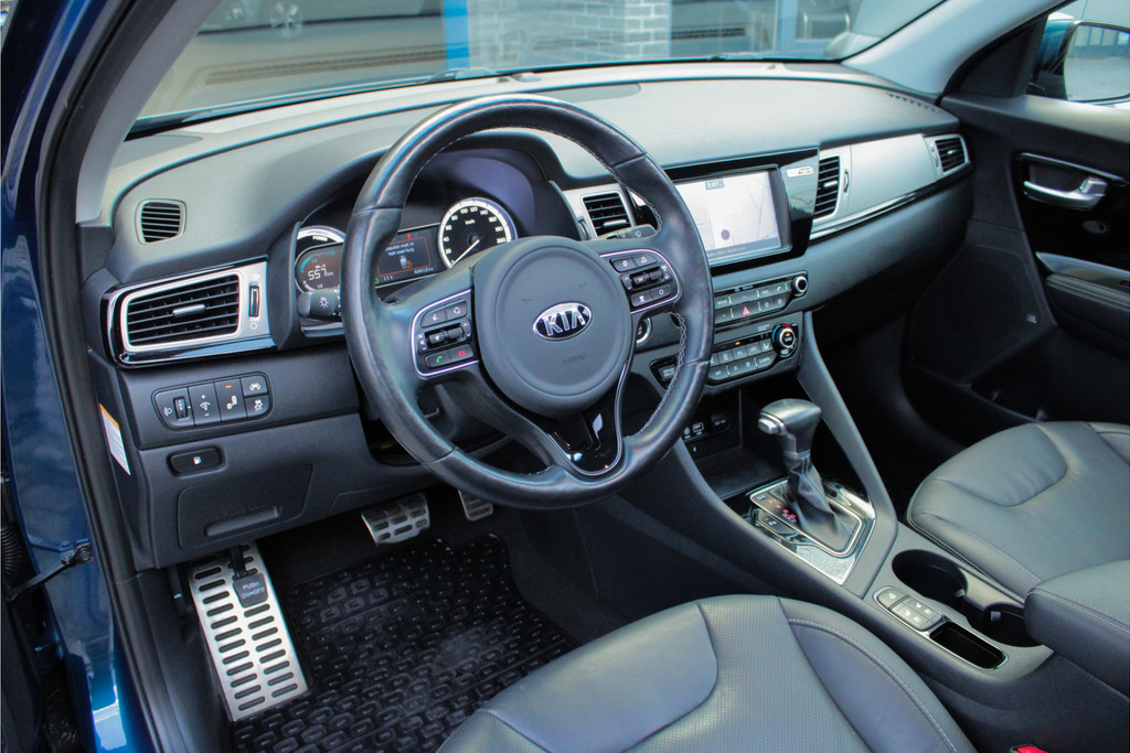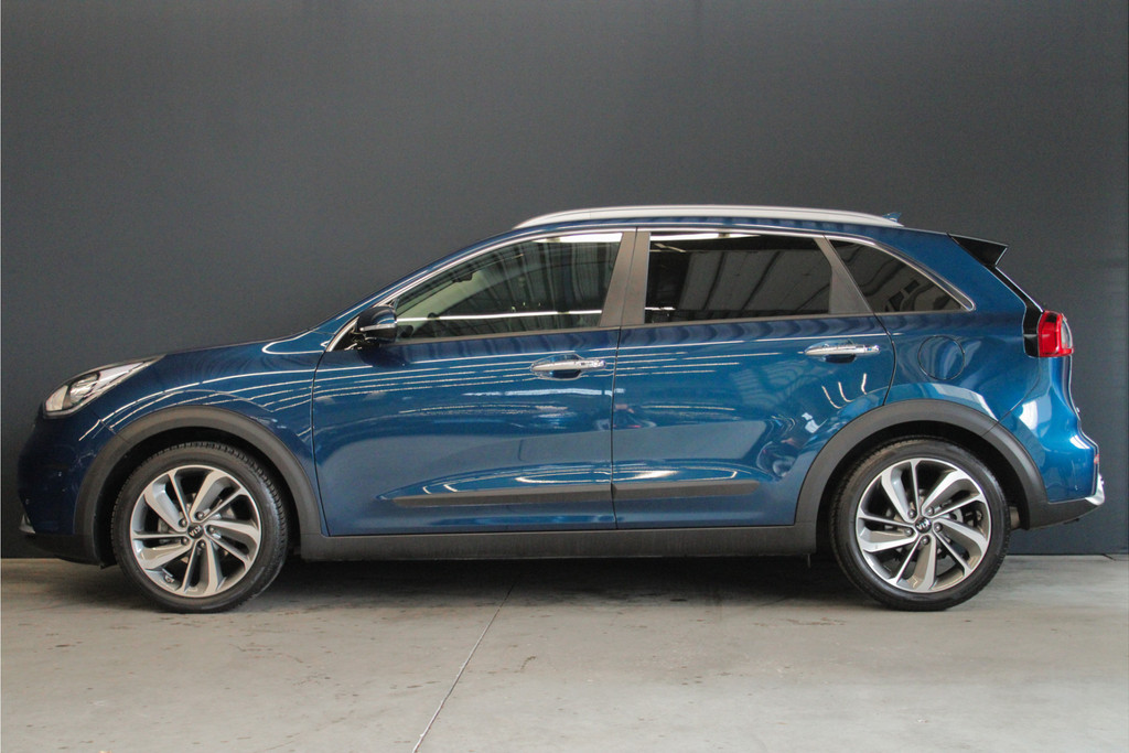 TIJDELIJKE FOTO'S van een vergelijkbare auto! Prachtige Kia Niro Hybrid in meest luxe "ExecutiveLine" uitvoering! Deze Kia Niro is aantoonbaar door de Kia-dealer onderhouden, dit is terug te vinden in het onderhoudsboekje (zie foto's). Verder is dit een zeer compleet uitgeruste auto met zowel veel praktische als veilige opties, denk hierbij o.a. aan: