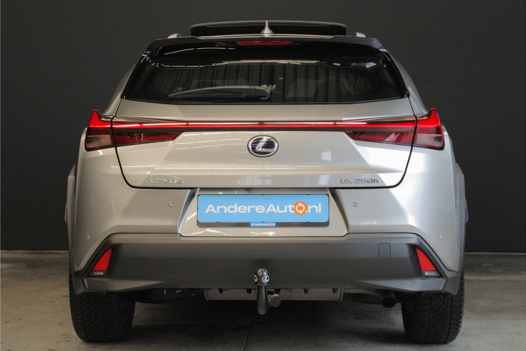 Mega luxe Lexus UX 250h, dit betreft de Executive Line uitvoering met extra optie pakket het "President Pack"! Nu is dit niet het enige wat deze UX onderscheid, ook heeft deze auto een afneembare trekhaak én een Elektrisch glazen schuif-/kanteldak! Qua onderhoudshistorie is deze Lexus ook compleet, de auto is aantoonbaar dealer onderhouden, dit is terug te vinden in het onderhoudsboekje (zie foto's). Verder is deze prachtige Lexus uitgevoerd met o.a. de volgende unieke opties: