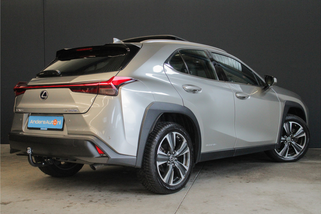 Mega luxe Lexus UX 250h, dit betreft de Executive Line uitvoering met extra optie pakket het "President Pack"! Nu is dit niet het enige wat deze UX onderscheid, ook heeft deze auto een afneembare trekhaak én een Elektrisch glazen schuif-/kanteldak! Qua onderhoudshistorie is deze Lexus ook compleet, de auto is aantoonbaar dealer onderhouden, dit is terug te vinden in het onderhoudsboekje (zie foto's). Verder is deze prachtige Lexus uitgevoerd met o.a. de volgende unieke opties: