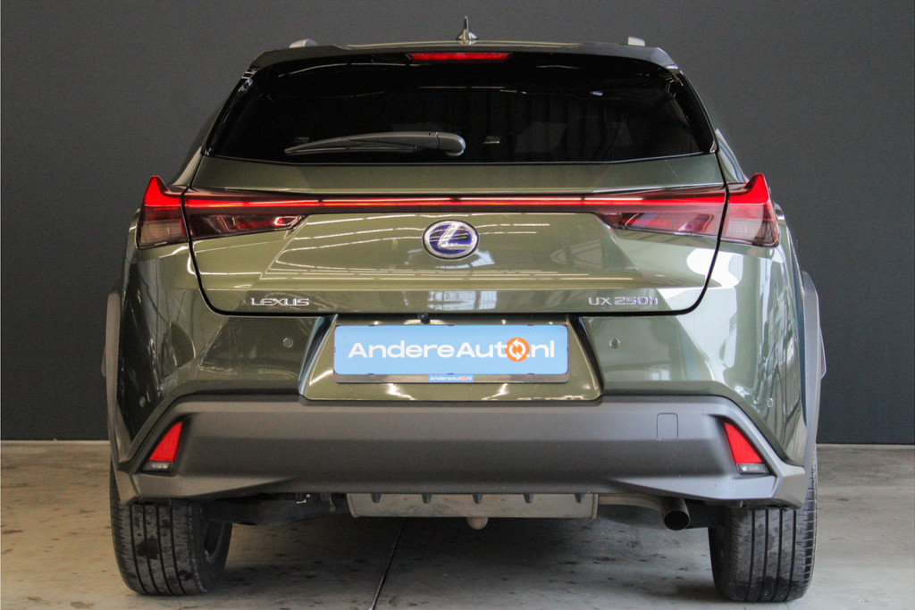 Dit betreft een demo auto waardoor de kilometerstand kan afwijken. Prachtige Lexus UX 250h in de rijk uitgeruste Preference Line uitvoering én in de unieke kleur "Terrane Khaki"! Dit betreft een zéér complete auto en voorzien van een tal van luxe en veilige opties, denk hierbij o.a. aan: