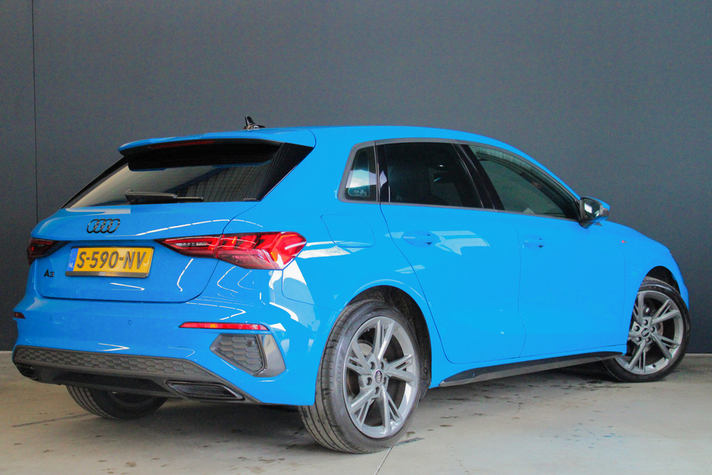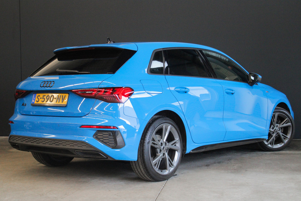 Door inruil bij ons binnen gekomen, unieke Audi A3 Sportback 35 TFSI S edition! Deze prachtige A3 is aantoonbaar dealer onderhouden, het digitale onderhoud is aanwezig bij deze auto (zie foto's). Qua uitstraling is dit een ware eye-catcher! De unieke blauwe kleur in combinatie met het S-Line interieur en exterieur maakt deze auto helemaal af! Ook aan opties geen gebrek bij deze Audi! Belangrijke opties van deze auto zijn bijvoorbeeld: