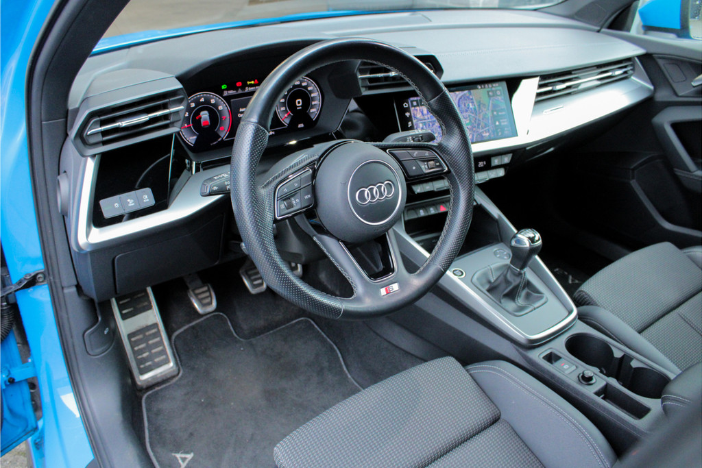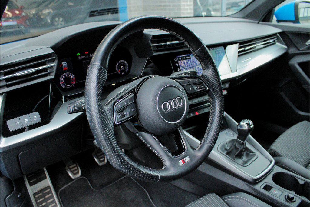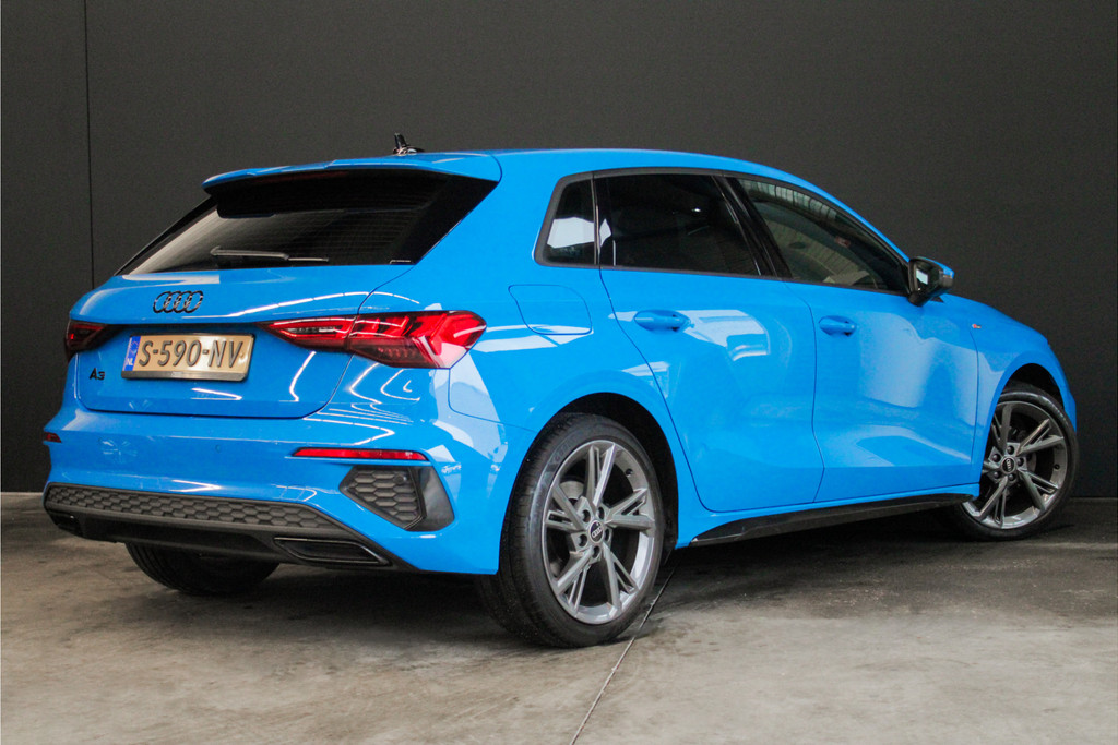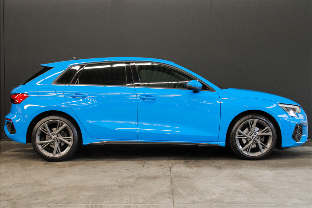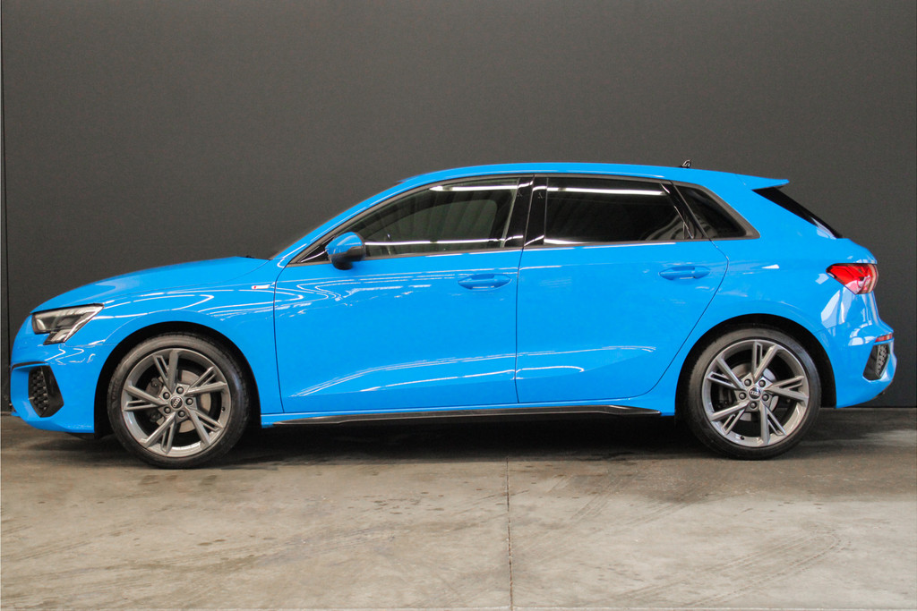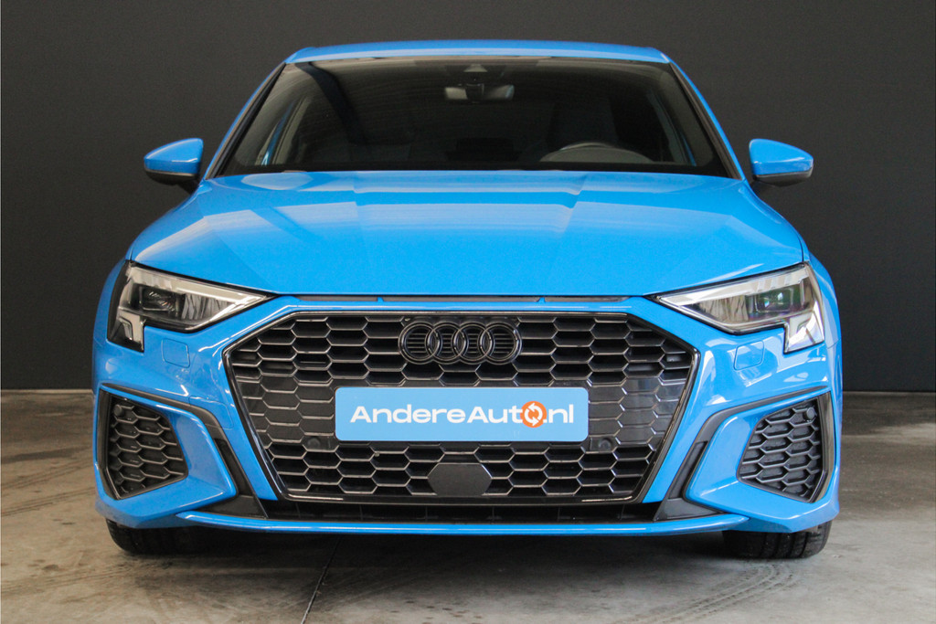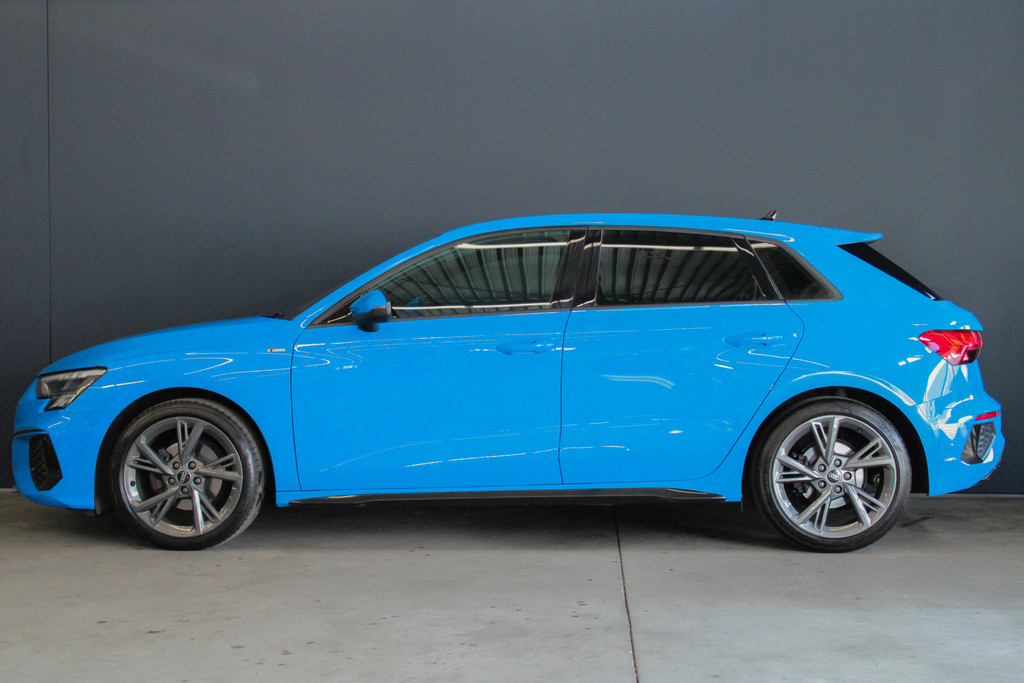 Door inruil bij ons binnen gekomen, unieke Audi A3 Sportback 35 TFSI S edition! Deze prachtige A3 is aantoonbaar dealer onderhouden, het digitale onderhoud is aanwezig bij deze auto (zie foto's). Qua uitstraling is dit een ware eye-catcher! De unieke blauwe kleur in combinatie met het S-Line interieur en exterieur maakt deze auto helemaal af! Ook aan opties geen gebrek bij deze Audi! Belangrijke opties van deze auto zijn bijvoorbeeld: