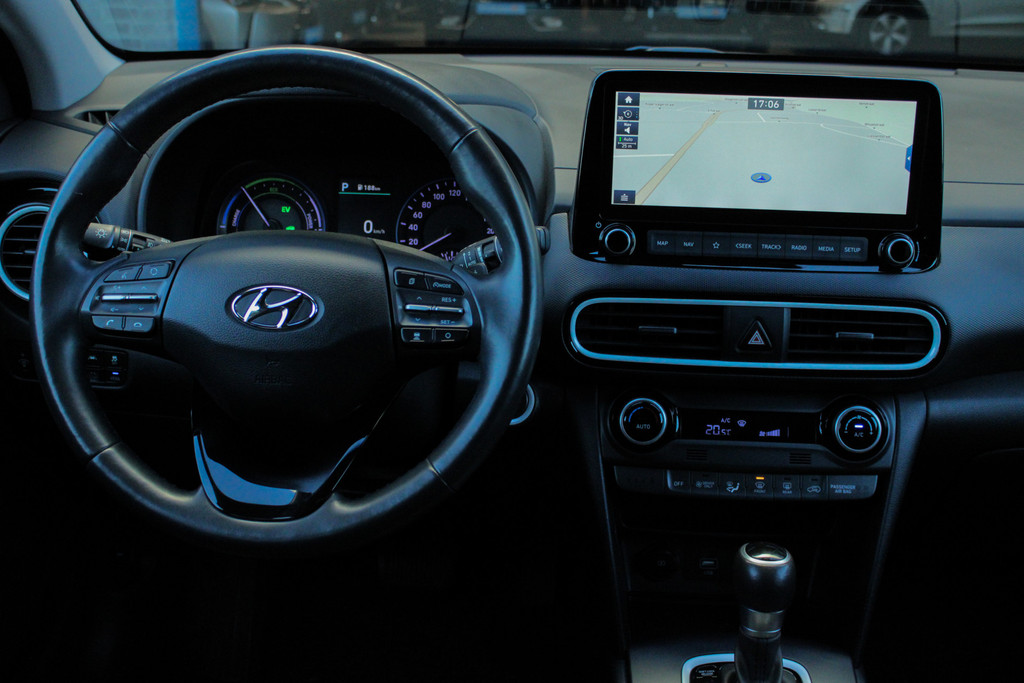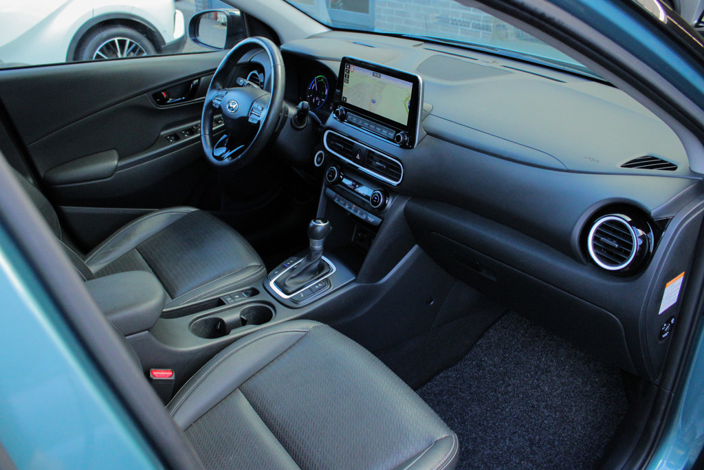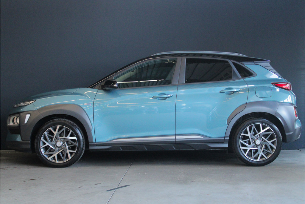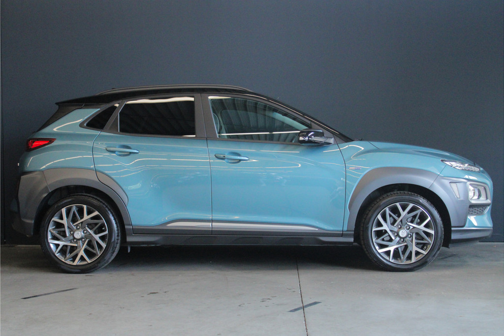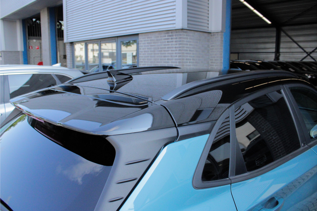 (Tijdelijke foto's van een vergelijkbare Hyunda Kona). Prachtige Hyundai Kona in de blauwe metallic lak met zwart dak en spiegels! Deze auto is voorzien van een tal van luxe en veilige opties, denk hierbij o.a. aan: