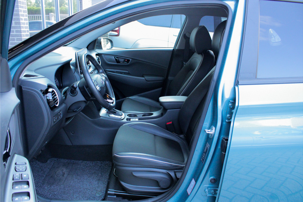 (Tijdelijke foto's van een vergelijkbare Hyunda Kona). Prachtige Hyundai Kona in de blauwe metallic lak met zwart dak en spiegels! Deze auto is voorzien van een tal van luxe en veilige opties, denk hierbij o.a. aan: