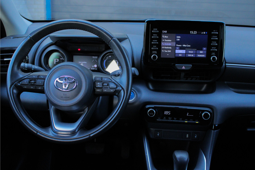 TIJDELIJKE FOTO'S! Prachtige Toyota Yaris 1.5 Hybrid! Dit betreft een auto die elk jaar goed onderhouden is, dit is terug te vinden in het onderhoudsboekje! Verder betreft dit een luxe uitgevoerde auto met een tal van veilige en comfortabele opties, denk hierbij o.a. aan: